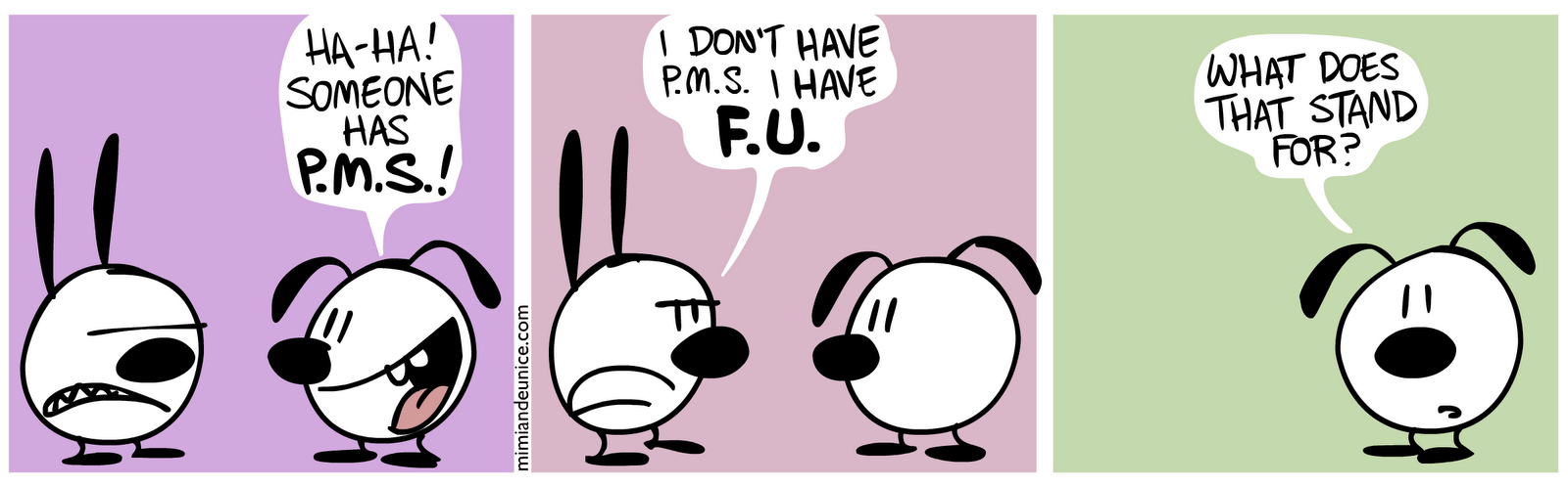 You're working very hard to lose your female readers, but I will not be moved! LOL Actually, although I always used the term PMS in polite society I generally just thought "bitchy" in my head - that was about right for what was going on!